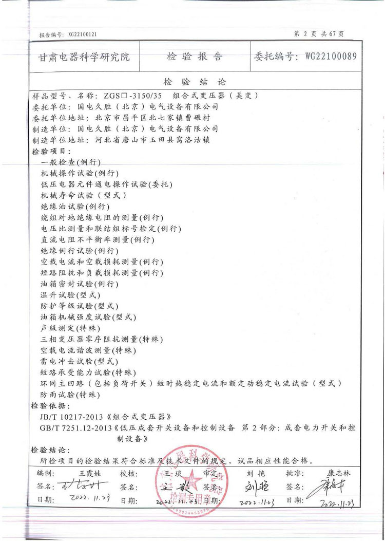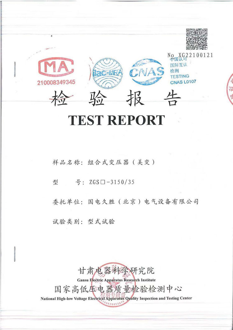 组合式变压器(美变)--ZGS□-3150/35型式试验报告